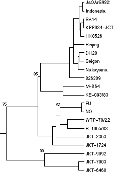 The nucleotide sequences of JE-FU and JE-NO have been deposited in