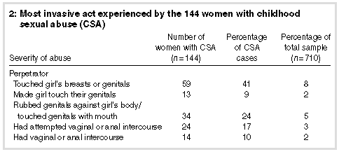 than the subject). Accordingly, 249 (35%) women reported some sexual abuse