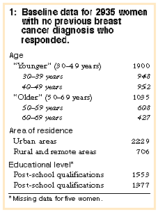 Design and setting: Validated prospective telephone survey of women aged 30-69 years selected at random from across Australia.