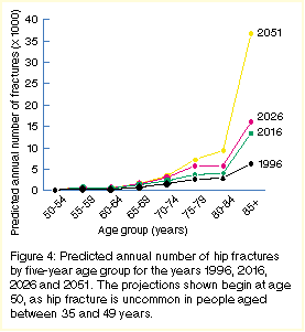 increase 25% from 1996 to 2006 (from 83 000 fractures to 104 000). Hip