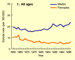 examine Australian suicide trends, 1964-1997, by age and sex. For