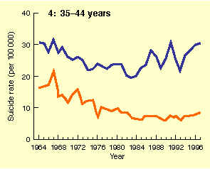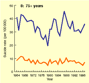 Suicide rates in the older age groups (35 to 75 years and over)