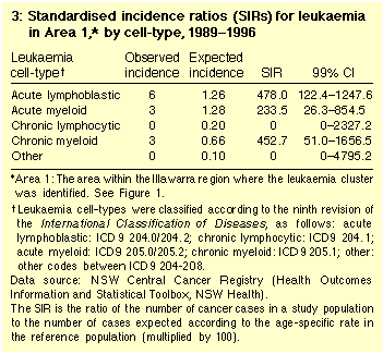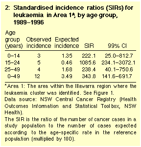 Investigation of a cluster of leukaemia in the Illawarra region of New South Wales, 1989-1996