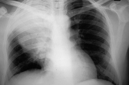 This is the cardinal investigation. In the appropriate setting, a new area of consolidation on chest x-ray makes the diagnosis, but x-ray is a poor guide to the likely pathogen. Other causes of a new lung infiltrate on chest x-ray include atelectasis, non-infective pneumonitis, haemorrhage and cardiac failure. Occasionally, the chest x-ray initially appears normal (eg, in the first few hours of S. pneumoniae pneumonia and early in HIV-related P. carinii pneumonia) (Box 2).