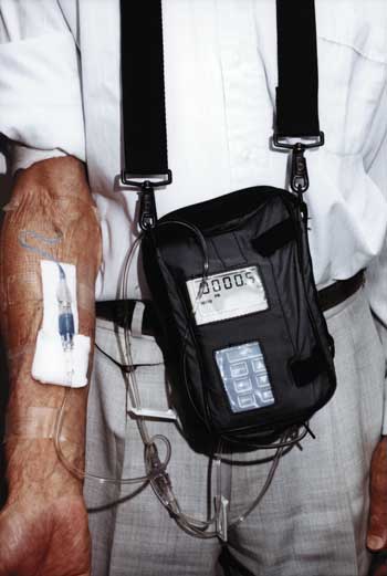 Serious, less common diseases that are often suitable for HITH care include endocarditis, osteomyelitis and septic arthritis, deep abscesses (eg, brain, psoas and liver) and cytomegalovirus disease in transplant recipients and people with HIV infection. As therapy is generally prolonged, long-term intravenous access is often needed (eg, peripherally placed central catheters). Conditions such as endocarditis and osteomyelitis may be suitable for innovative treatment regimens, such as continuous-infusion β-lactam therapy using computerised or elastomeric delivery devices (case report, Box 4).