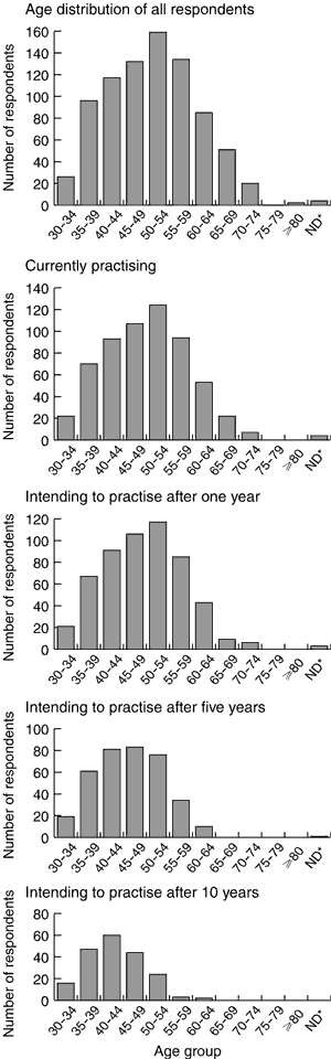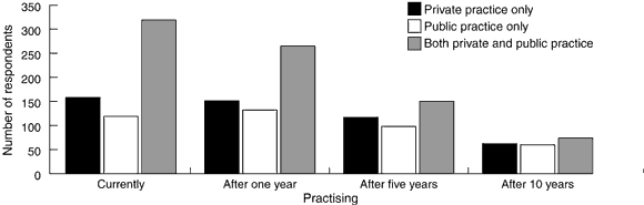 The reported intentions of the respondents suggest that the number practising obstetrics will fall over the next 10 years for both public and private practice (Box 1) and across all age groups, although the proportion intending to cease practising was higher among older respondents (Box 2).