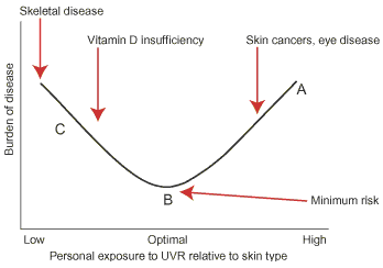 It is inappropriate to eschew all exposure to UVR. There are diseases related to insufficient as well as excessive UVR exposure, and the burden of disease related to UVR is likely to be a U-shaped, not linear, curve (Box 1).