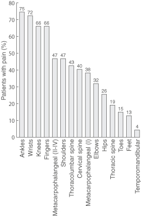 3: Prevalence of joint pain at first review* of 47 patients with Ross River virus disease