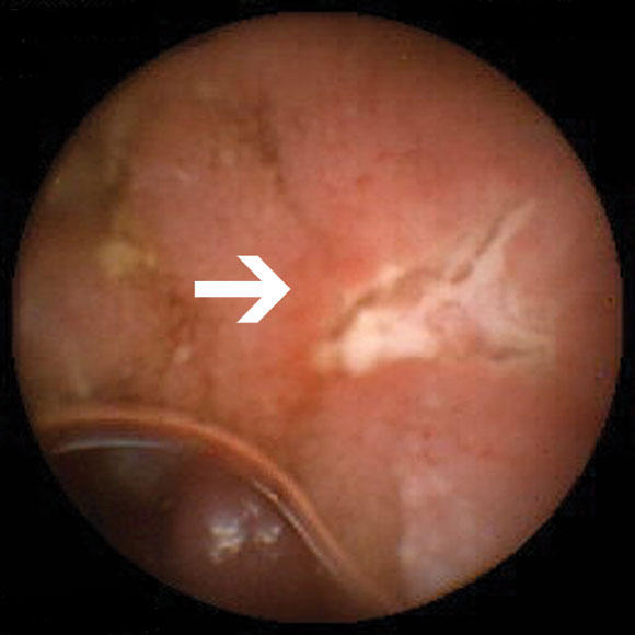 In one patient referred with OGB and abdominal pain, the capsule was not excreted. This was confirmed on an abdominal x-ray and computed tomo-graphy scan of the abdomen. At laparo-tomy, the capsule was found to be proximal to an ileal stricture, and a small-bowel resection was performed. Histological results were consistent with Crohn's disease.