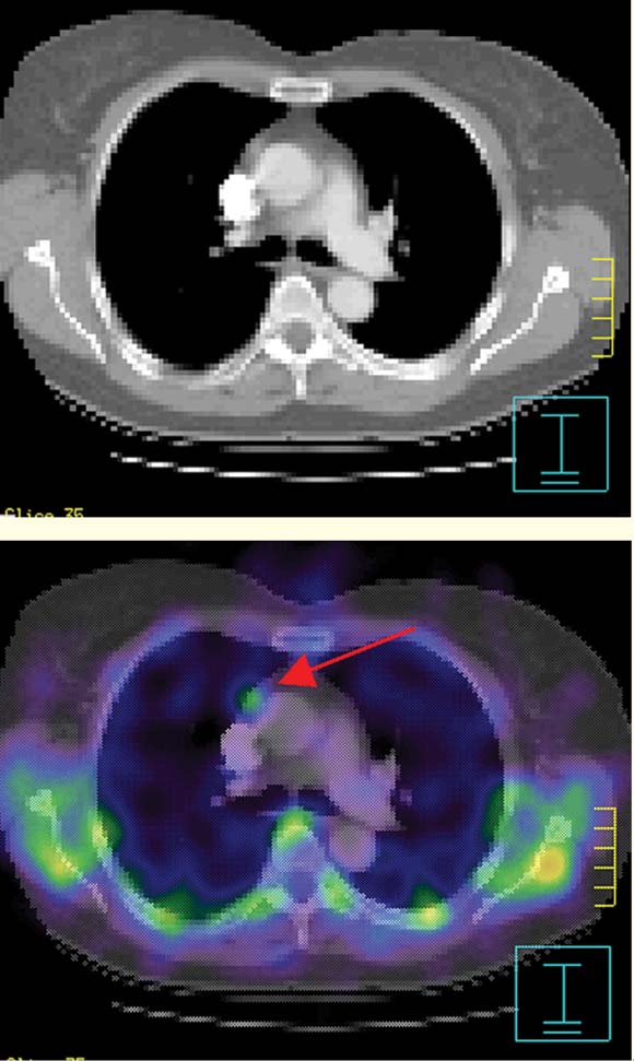 Our finding on initial sestamibi scanning could have represented retained activity within a large vessel, and, as false-positive results may occur with all imaging, many investigators have advocated the need for concordance on at least two diagnostic modalities before surgical excision.4,13 On further investigation, the mediastinal abnormality seen on CT was so small that its clinical significance could not be confidently assessed. Traditionally, such a problem is unlikely to be resolved non-invasively.