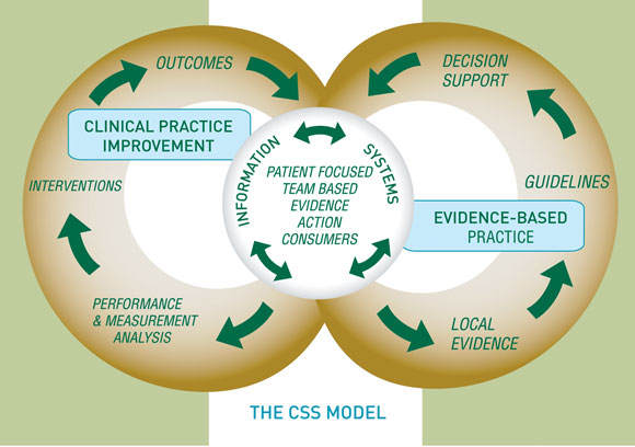 The Program sought to assist the routine uptake of best evidence within clinical practice through a Clinical Support Systems (CSS) model. This model combined the principles of clinical practice improvement (CPI)6 and evidence-based medicine (EBM)7 into a broad framework to enable clinicians to embed best practice routinely in clinical care. It had the following broad specifications (see also Box 1):