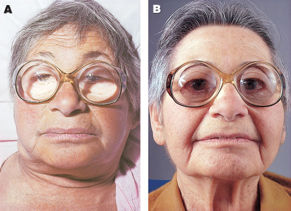 Graves disease is caused by stimulation of the thyroid by antibodies which bind to TSH receptors and mimic the effect of prolonged TSH stimulation. These TSH-receptor antibodies result from abnormal immunoregulation permitting generation and expansion of clone(s) of antibody-producing cells in genetically predisposed individuals with specific HLA-D subtypes.5 Spontaneous exacerbations and remissions of Graves disease can occur. The environmental triggers are still not well characterised, but postpartum exacerbation is common, and such a history should be sought routinely when Graves disease is diagnosed. Excess iodine can precipitate active Graves disease by providing more substrate for hormone synthesis and possibly also by disturbing immune function. Persistence or recurrence of Graves disease is more likely when there is a previous history of recurrent disease, in the presence of a large goitre, when T3 excess persists despite control of T4 with thionamide therapy, and when TSH-receptor antibody persists during thionamide therapy. In addition to hyperthyroidism, other autoimmune manifestations of Graves disease are Graves ophthalmopathy (Box 3) and Graves dermopathy (pretibial myxoedema). Autoimmune thyroid disease is associated with some other, less common, autoimmune diseases, including pernicious anaemia and Addison’s disease.