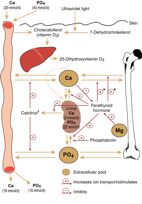 * Parathyroid hormone (PTH) can increase both bone formation and bone resorption, depending on calcium requirements and blood levels. † 1,25-Dihydroxyvitamin D3. |