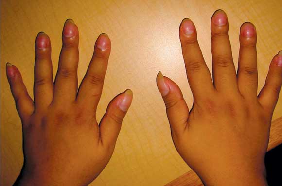 Hypertrophic osteoarthropathy (HOA) secondary to pulmonary metastatic phyllodes tumour was diagnosed. HOA is a paraneoplastic syndrome characterised by digital clubbing, polyarthralgia and periostosis.1 The joint pain, resistant to non-opiate and opiate analgesia, responded to intravenous pamidronate. There was no tumour response to chemotherapy with adriamycin and ifosfamide.