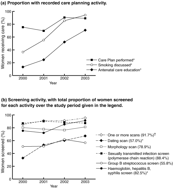 Ultrasound dates are more accurate than menstrual dates for determining the stage of a pregnancy, and hence for assessing prematurity.23 During the study period, attendance for ultrasound scanning increased. This cohort of Aboriginal and Islander women will thus be one of the few in Australia with accurately dated pregnancies, which is vital to clinical decision making and perinatal research in the Indigenous community.
