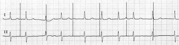 1 Electrocardiogram on admission showing pacing spikes with evidence of ventricular undersensing and non-capture