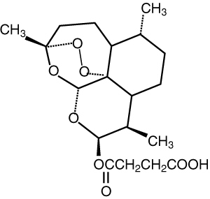 Artesunate (artesunic acid) Route of administration: Oral, rectal, intravenous, intramuscular Elimination half-life: 2–5 minutes (converted to dihydroartemisinin) |
