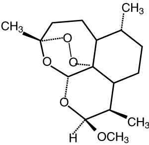 Artemether* Route of administration: Oral, intramuscular Elimination half-life: 3–7 hours (converted to dihydroartemisinin) |