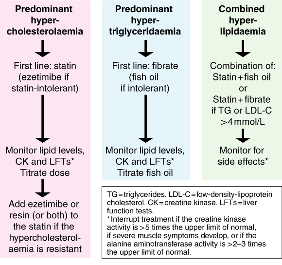 Effective monotherapy is available for predominant hypercholesterolaemia and predominant hypertriglyceridaemia, but combination therapy may be required for severe cases or in those with mixed hyperlipidaemia.