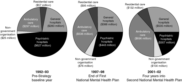 The changes that followed the introduction of the Mental Health Strategy needed to address the legacy of 30 years of deinstitutionalisation, which saw the number of psychiatric beds decrease from 30 000 to about 8000, with limited development of community services, and a doubling of Australia’s population.10,11