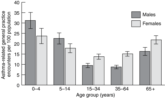 Surveys show that women have a higher prevalence of asthma than men, and this is evident in all adult age groups. Without objective measures, it is not possible to ascertain the contribution of diagnostic bias (ie, a preference for labelling women with asthma as opposed to COPD) to this difference.