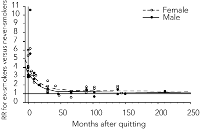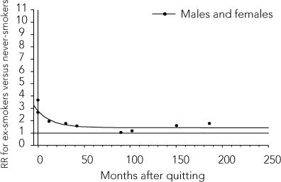 2 Estimated decline in relative risk (RR) after quitting smoking