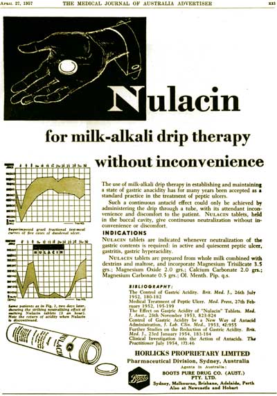 Not so long ago, peptic ulcer disease played havoc with people’s lives. Its sufferers endured chronic and debilitating pain and ran the risk of a life-threatening gastrointestinal haemorrhage or ulcer perforation. Throughout most of the 20th century, the conventional wisdom was that peptic ulcer disease was caused by gastric juice corroding vulnerable mucosa; the dictum “no acid — no ulcer” ruled the day, and neutralisation of gastric acid was the mainstay of management (Box 1). Fixed in this belief, gastroenterologists and surgeons vigorously argued the relative merits of different medications and surgical procedures in reducing gastric secretion, while research addressed the influence of “associated” factors such as social status, smoking and stress on gastric secretion and mucosal resistance.