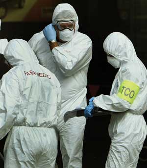 09:05 — the immediate vicinity of the incidents was cordoned off and air sampling undertaken by the ARFF and airport staff for “breathability” and “flammability”. Test results were unremarkable, although the test was considered incapable of detecting any chemical or biological contaminants.1 After testing, the southern terminal’s air-conditioning system was switched to spill mode (ie, air is expelled from the building to the outside) between 09:30 and 09:45, possibly removing any harmful agents that may have been in the facility.1
