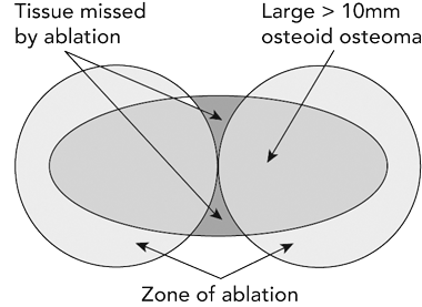 Failure to locate the lesion at open excision is a well recognised complication,13 but with precise CT-guided localisation of the nidus during RFA, incorrect targeting is much less likely to occur.