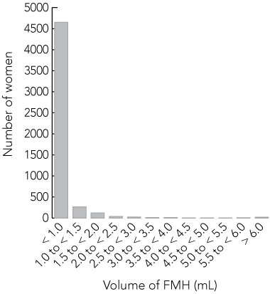 The second approach is the Kleihauer test followed by flow cytometric quantitation. Despite its general lack of reproducibility for FMH volume quantitation, a well-performed Kleihauer test is accepted by many as an appropriate screening technique for detection of FMH.14 Therefore, FMH screening using the Kleihauer test followed by accurate quantitation using flow cytometry if fetal red cells are detected could be considered. Based on our data, we estimate that this approach would necessitate flow cytometric FMH volume quantitation in less than 10% of cases.