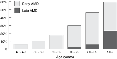The prevalence of AMD increases exponentially with age (Box).1 Australian data from the Visual Impairment Project and the Blue Mountains Eye Study predict that the number of people in Australia with AMD will double in the next 20 years, with direct costs to the community reaching over $1 billion by 2020.2 Unfortunately, current treatment options for AMD have limited success, with even the newest treatments, such as photodynamic therapy and vascular endothelial growth factor (VEGF) inhibitors, applicable to only some cases, and lost vision is seldom regained.