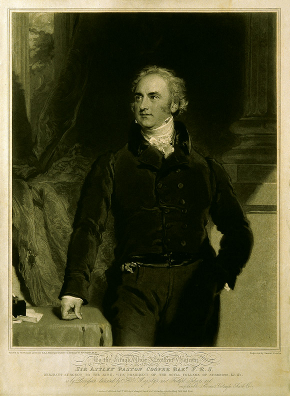 Sir Astley Cooper (1768–1841), the son of a Norfolk clergyman, was apprenticed to London surgeons from age 16, first at Guy’s Hospital and later at St Thomas’. In 1800, he was elected surgeon to Guy’s Hospital. Cooper “attracted a large number of wealthy and influential patients, including Lord Liverpool, the Duke of York, the Duke of Wellington and the Prince of Wales, who, as George IV, created him baronet in 1821 following the successful removal of a painful cyst from the king’s scalp”.1 He earned an enormous income from private practice which “in his peak years exceeded £20,000”.1 By comparison, in 1825, The Lancet advertised for sale a “medical practice in a populous village in the neighbourhood of London” with “receipts from £400 to £500 per annum”.2 Jane Austen’s Pride and prejudice was published in 1813, and her famous Mr Darcy, with his “large estate in Derbyshire”, had “ten thousand a year”.3