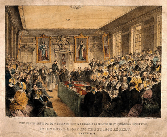 In the early 19th century, an array of English, Scottish and Irish colleges, universities and guilds awarded medical qualifications. The content of their courses and requirements for practical experience varied widely. A few students who came to hear Cooper may have been apprenticed to leading London surgeons, living in the surgeons’ homes and paying substantial annual fees for the privilege. They possibly aspired to be full-time surgeons in London or other cities. Most would have already attained a medical degree from one of the Scottish universities or spent some years apprenticed to an apothecary. These students would pay lesser fees to hospitals for a year or two to “walk the wards” before taking up careers as general practitioners. During their attachment to the hospital many would also undertake a course at a private anatomy school.5