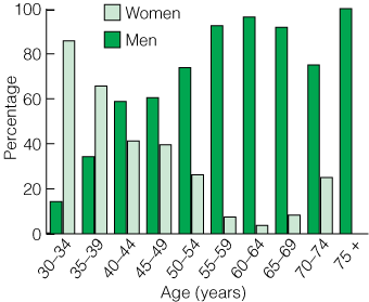 Obstetrics and gynaecology is witnessing an increase in the proportion of women participating in the specialty. Between 2000 and 2003, the specialty has seen the percentage of women increase from 18.8% to 23.5%, while the overall percentage of women in the specialist workforce only increased from 18.0% to 19.7%.14 Of those in training for specialist obstetrics and gynaecology, 62.5% were women.4