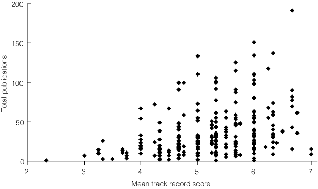 2 Comparison of mean track record scores with total publications for project grant applications in 2001*