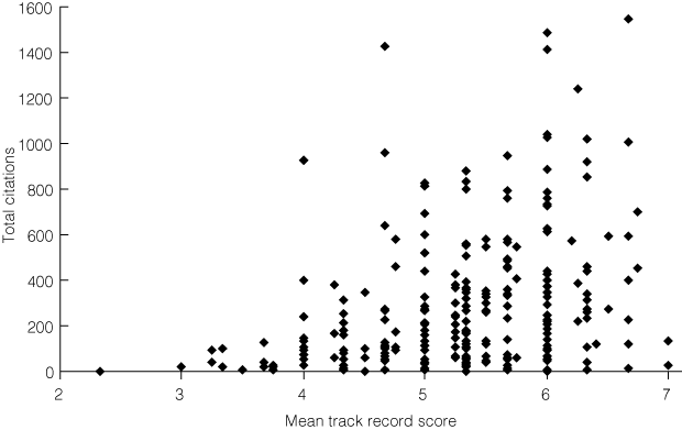 3 Comparison of mean track record scores with total citations for project grant applications in 2001*