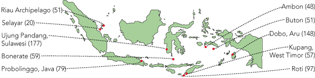 In the 15-month study period, 1471 illegal fishermen underwent health assessments in Darwin. Demographic and TB data are presented in Box 1. The most common islands of origin for Indonesian fishermen were Aru, Roti and Sulawesi (Box 2).