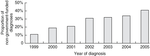 1 Proportion of non-government-funded autism spectrum disorder diagnoses in Western Australia, 1999–2005