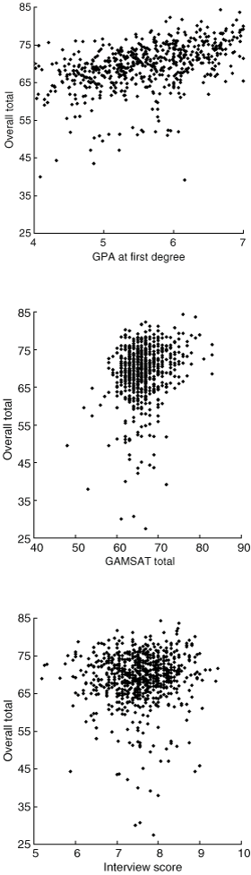 Conclusion: The school’s selection criteria only modestly predict academic performance. GPA is most strongly associated with performance, followed by interview score and GAMSAT score. The school has changed its selection process as a result.