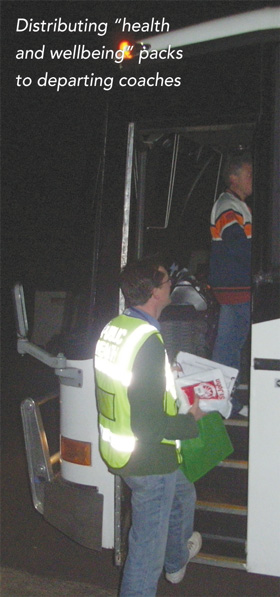 NSW public health service workers drew on their own experience, gained from preparing for other mass gatherings, and on the experience of public health services of other countries that had hosted WYD events,2,3 to consider risks to the health of participants and the community during WYD 2008. Key risks identified were communicable disease outbreaks (due to endemic local diseases such as influenza, and the possibility of imported diseases not seen in Australia) and environmental health issues (particularly considering the temporary and basic nature of much of the mass accommodation). The need for pre- and intra-event health promotion messages was identified, including ensuring that participants were aware the event was taking place in the southern hemisphere winter, unlike previous WYDs (which took place in the northern hemisphere summer).
