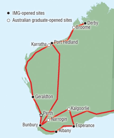 Apart from their substantial staffing contribution, IMG medical coordinators at the RCSWA have been solely responsible for creating rural clinical school centres in six of the 10 currently operating sites (Box 2). Although there is no clear relationship between the size or remoteness of a town and IMG recruitment to the RCSWA, it is apparent that some of the most remote WA sites have consistently been IMG-led, even if this is with an annual succession of newly recruited IMGs, each committed to the RCSWA.