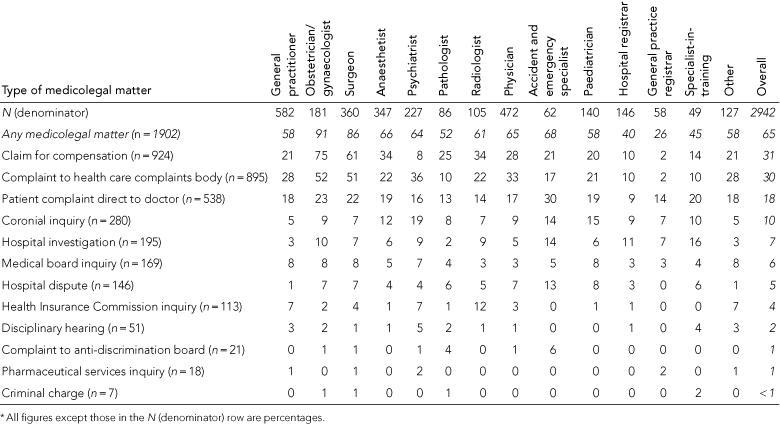 Main outcome measures: Occurrence and type of past and current medicolegal matters with which doctors have been involved.