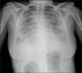 Patient with pandemic (H1N1) 2009 influenza showing bilateral interstitial and airspace opacity. |