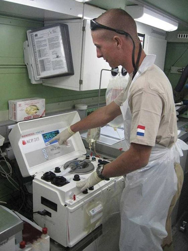 The Netherlands developed a state-of-the-art frozen blood component system during North Atlantic Treaty Organization operations in Bosnia in the 1990s.7 In 2002, universal frozen blood products were introduced, including a frozen platelet system. This is the system now in place at the Uruzgan Medical Centre (UMC) at Tarin Kowt in Afghanistan, where the ADF embedded a surgical and intensive care team into the Netherlands-led forward health facility in 2008.