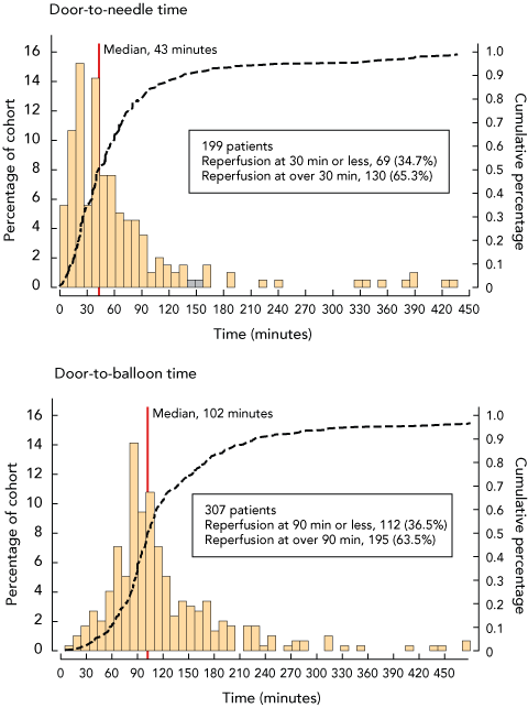 - 13. Cannon CP, Gibson CM, Lambrew CT, et al. Relationship of symptom-onset-to-balloon time and door-to-balloon time with mortality in patients undergoing angioplasty for acute myocardial infarction. JAMA 2000; 283: 2941-2947.