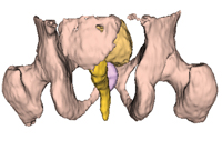 D: A surface rendering of the organs in the MRI “atlas” used to perform the automatic segmentation. |