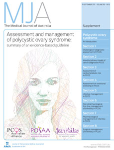 Assessment and management of polycystic ovary syndrome: summary of an evidence-based guideline Assessment and management of polycystic ovary syndrome: summary of an evidence-based guideline Helena J Teede, Marie L Misso, Amanda A Deeks, Lisa J Moran, Bronwyn G A Stuckey, Jennifer L A Wong, Robert J Norman, Michael F Costello and on behalf of the Guideline Development Groups Med J Aust 2011; 195 (6 Suppl): S65 Open Access