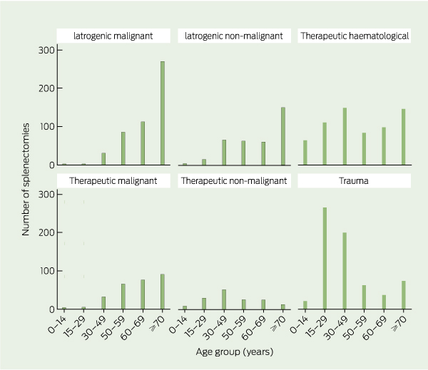 Design, setting and participants: Analysis of a non-identifiable linked hospital discharge administrative dataset for splenectomy cases between July 1998 and December 2006 in Victoria, Australia.