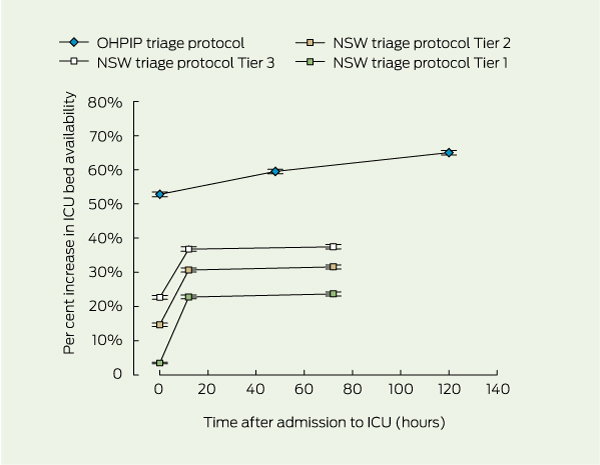 As the NSW triage protocol was instituted as a mandatory policy directive,5 our primary objective was to determine the increase in ICU bed availability that would result from its use. Our second objective was to compare this increase in bed availability with that from use of the OHPIP triage protocol.
