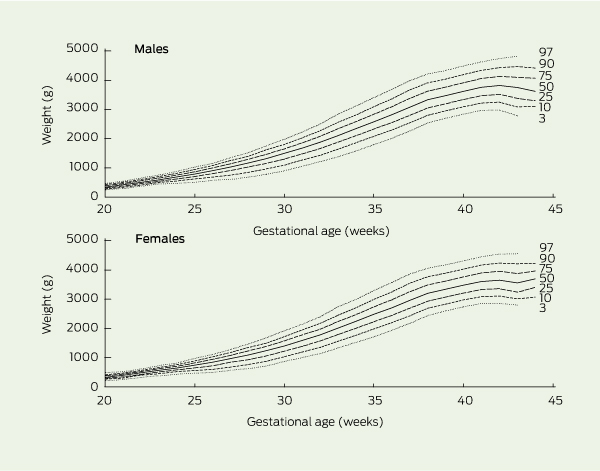 Australian birthweight percentiles continue to be used in clinical practice and research.15 The percentiles presented here have a role as a basis for identifying high-risk babies and are recognisable, practical and easily incorporated into charts and presentations. These percentiles provide an up-to-date reference for clinicians and researchers.